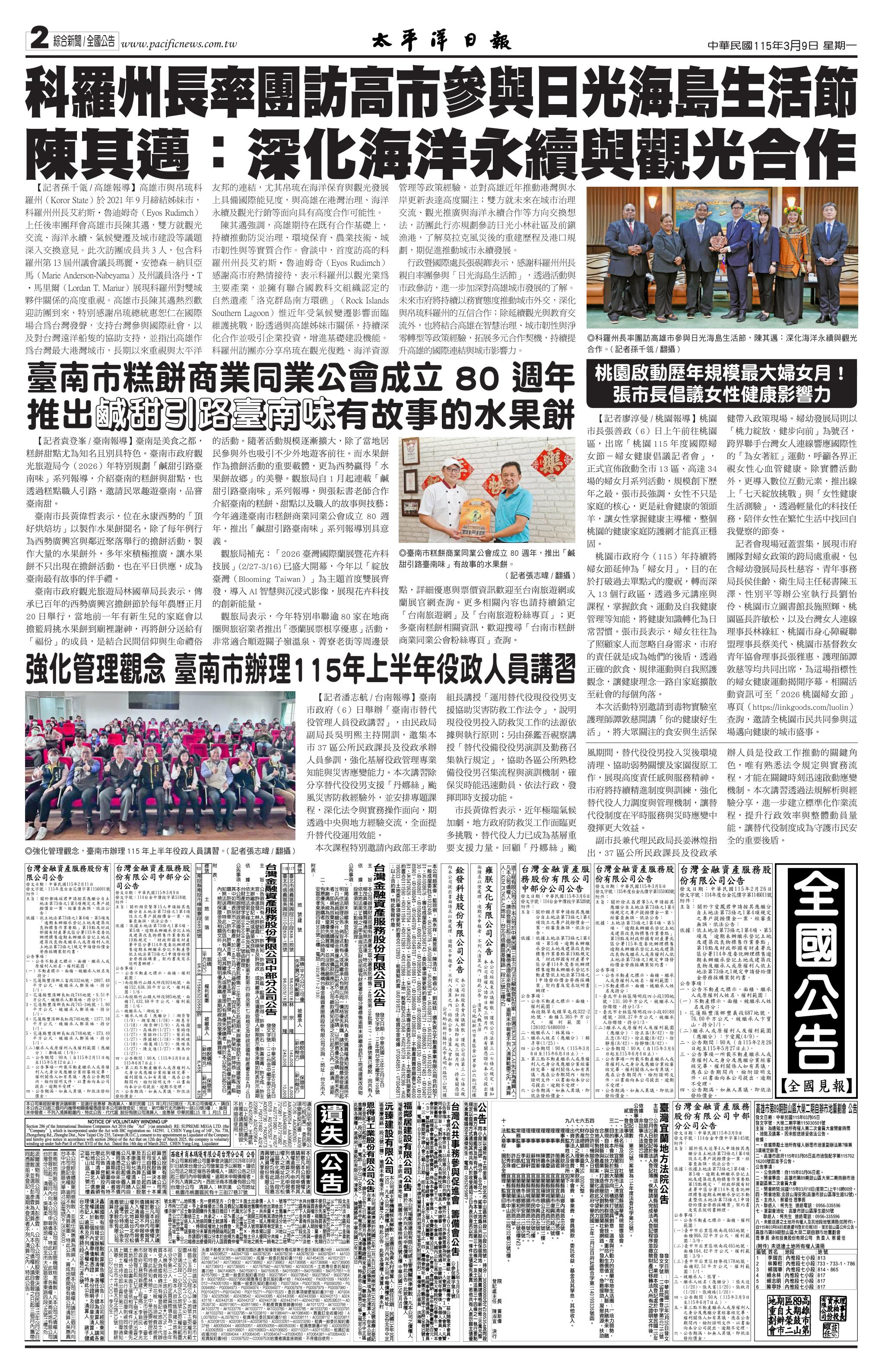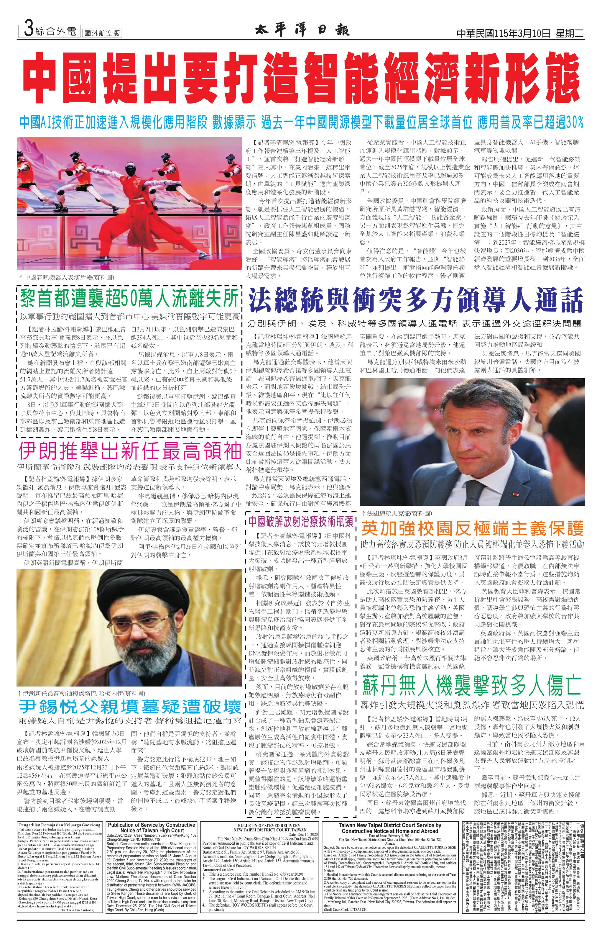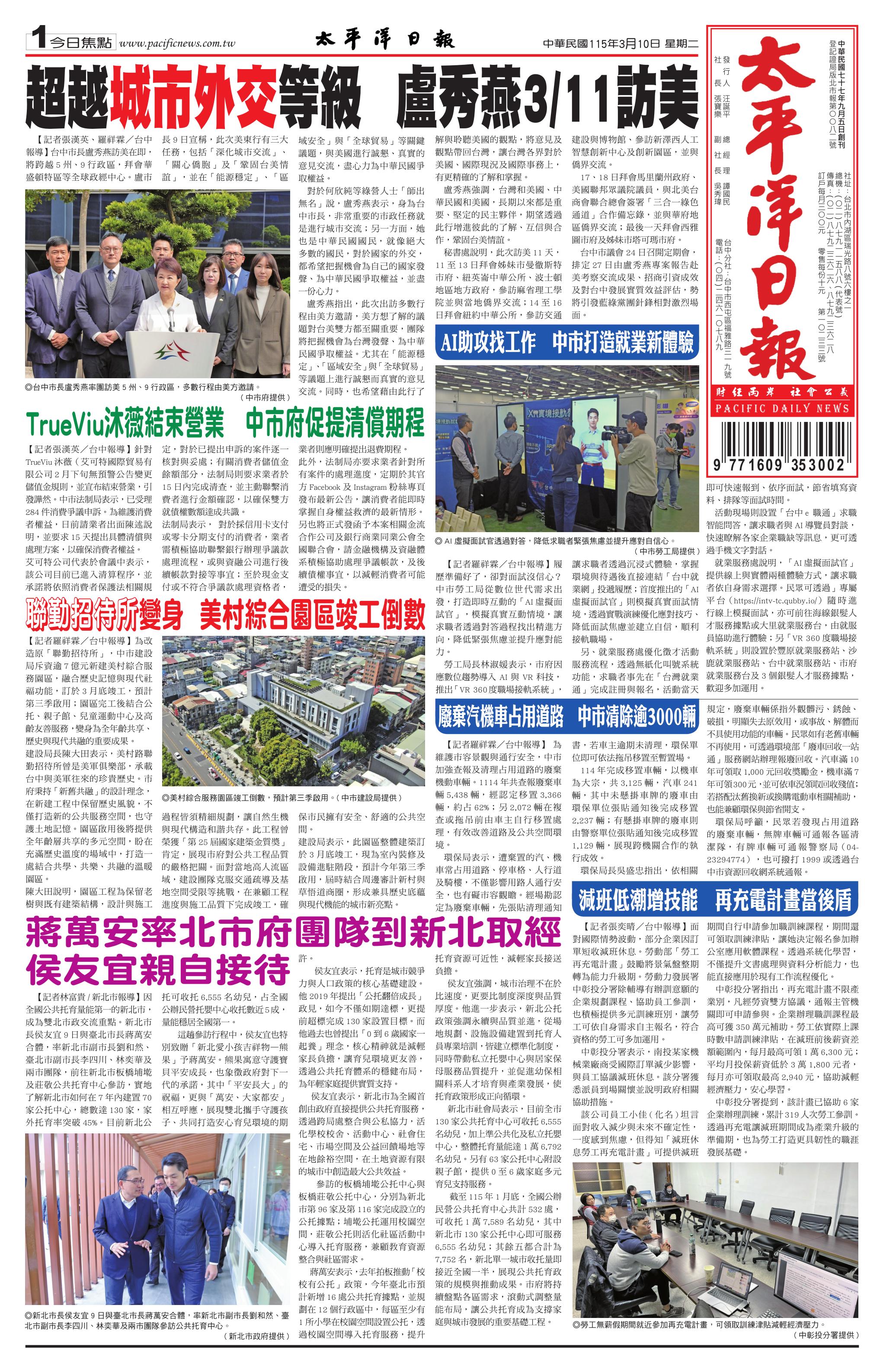115 年 3 月 10 日新聞版面