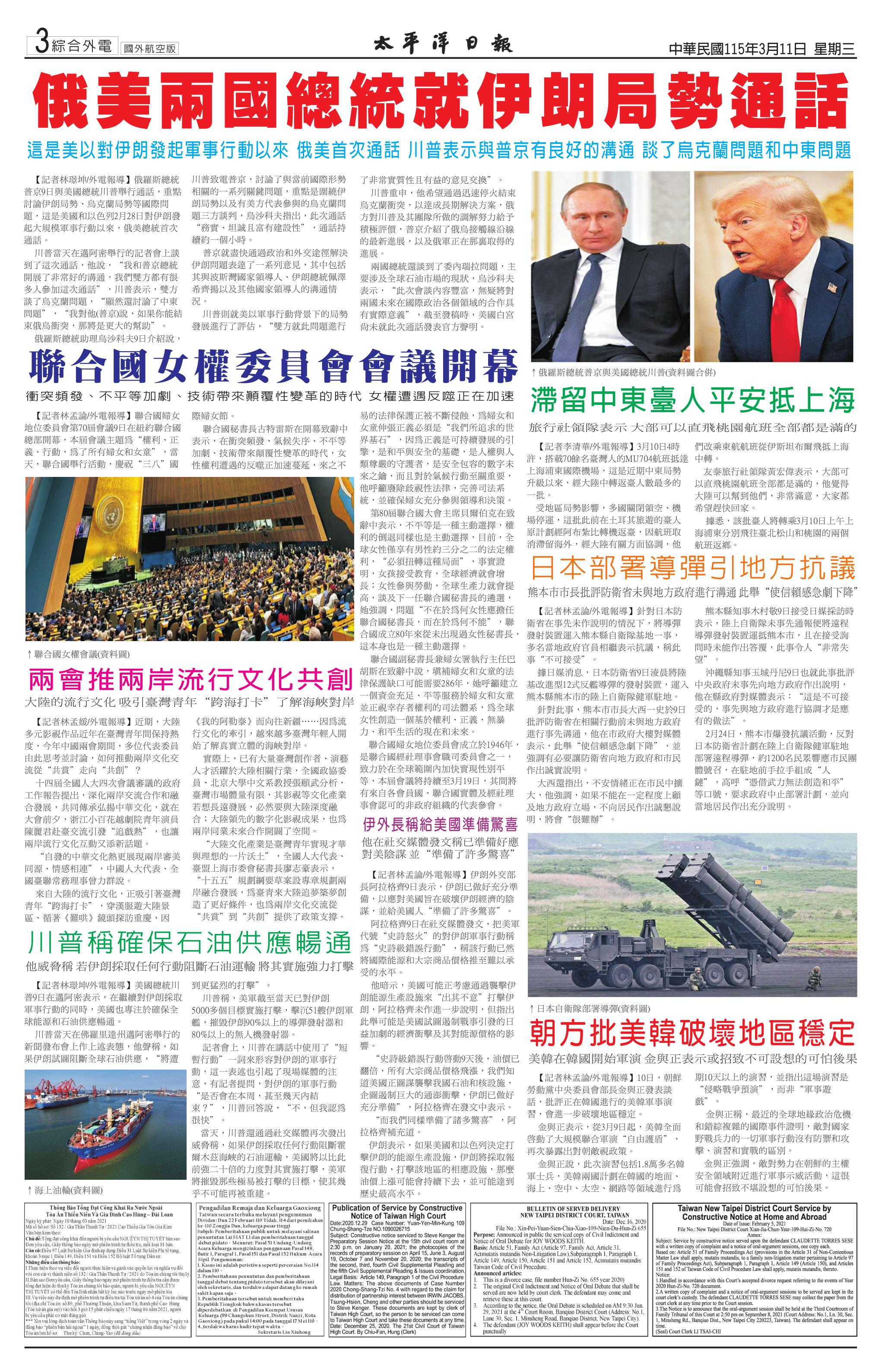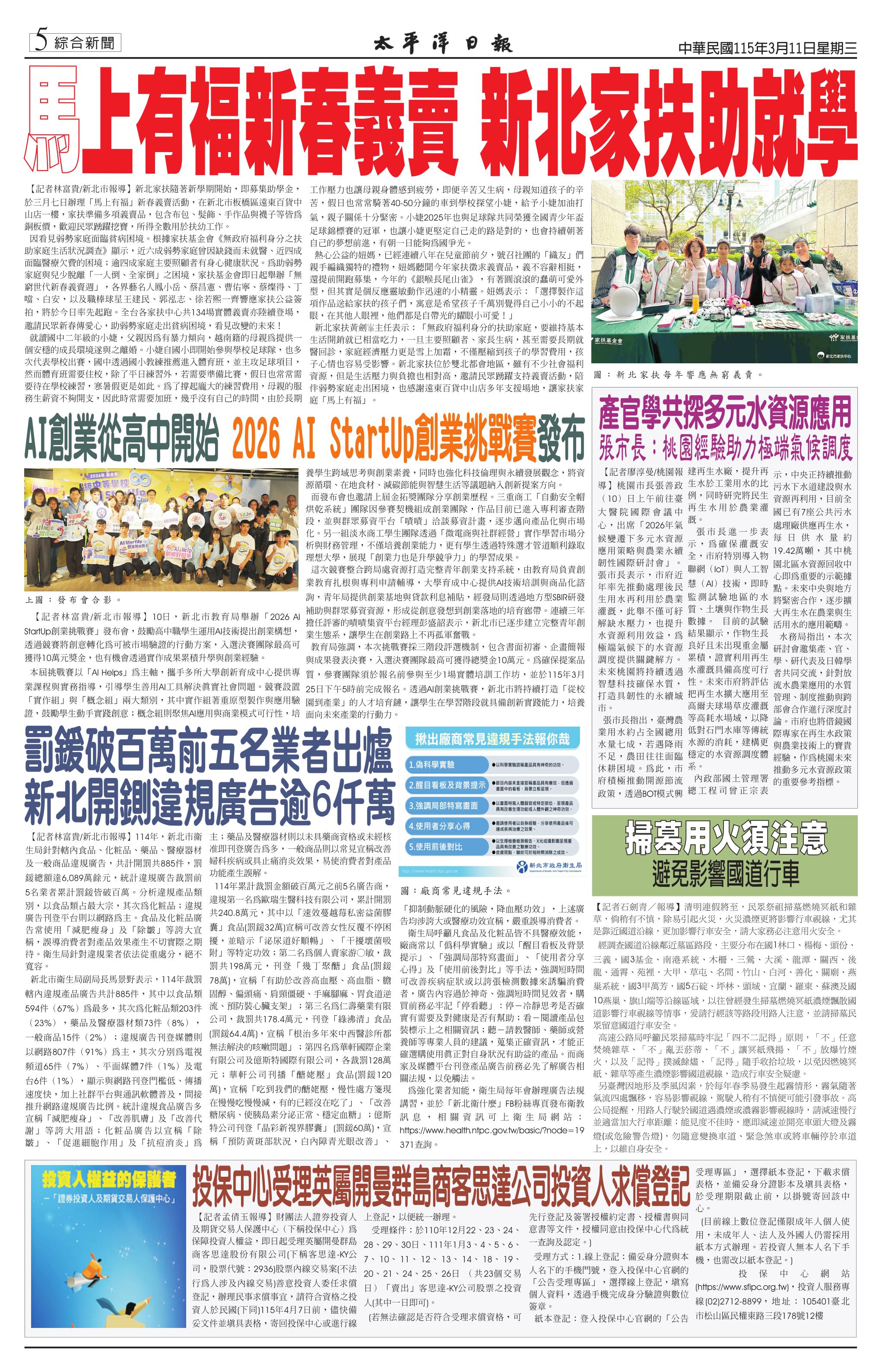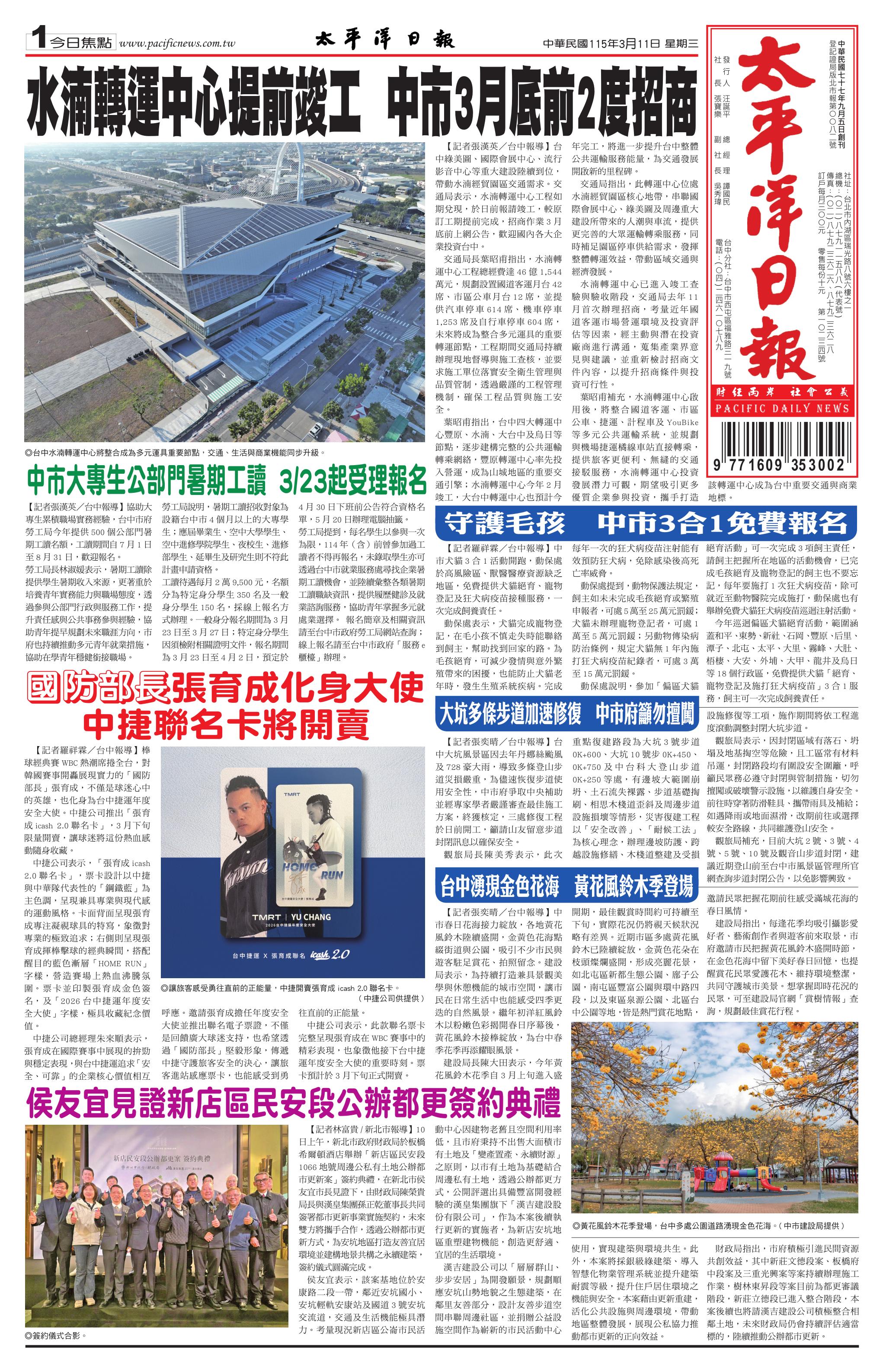 115 年 3 月 11 日新聞版面