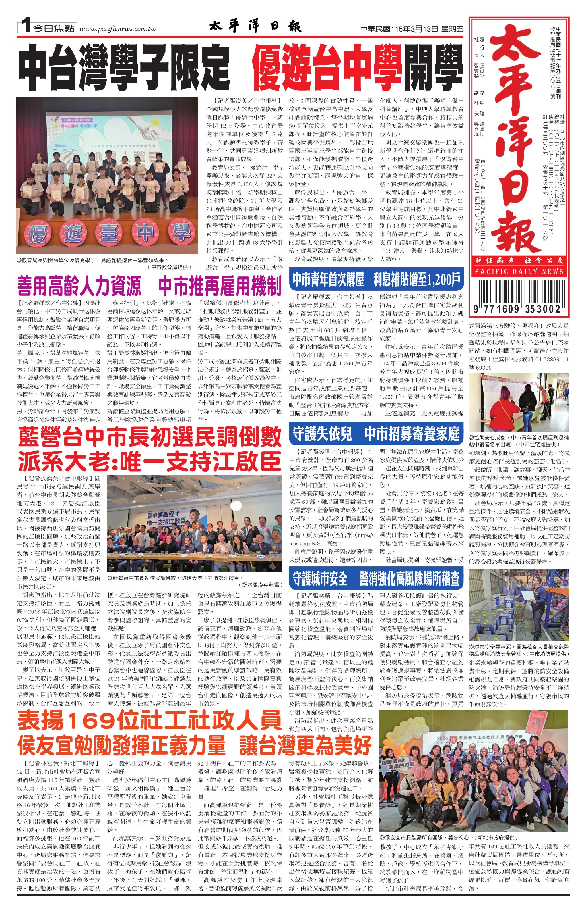 115 年 3 月 13 日新聞版面
