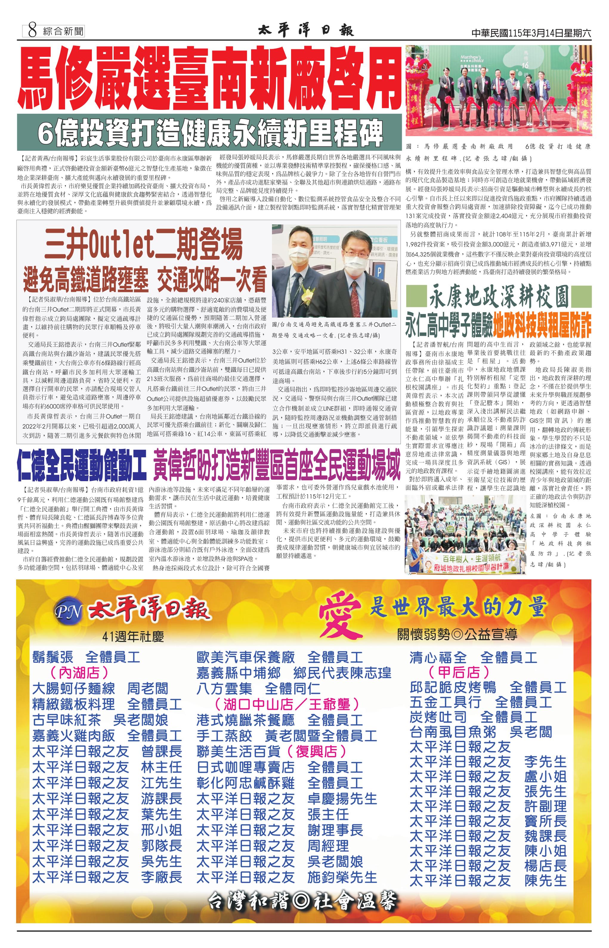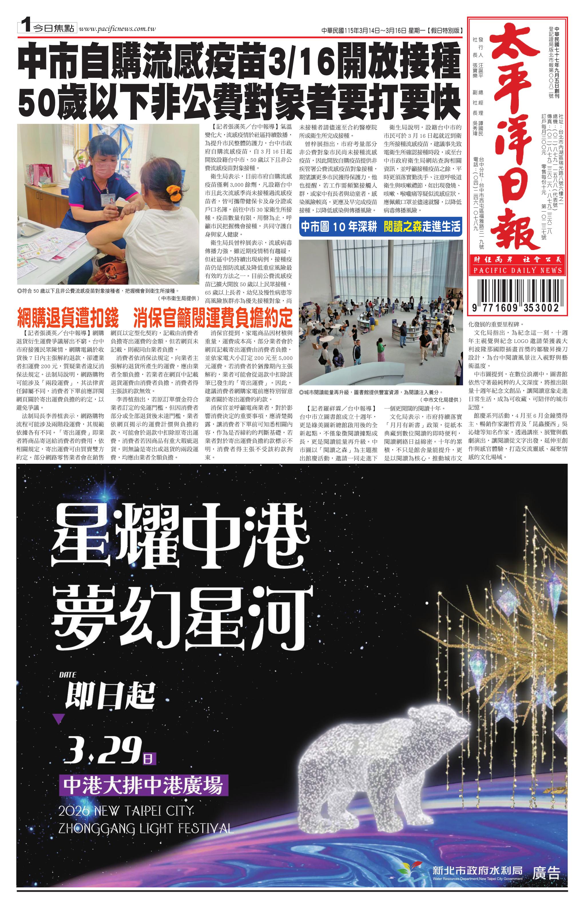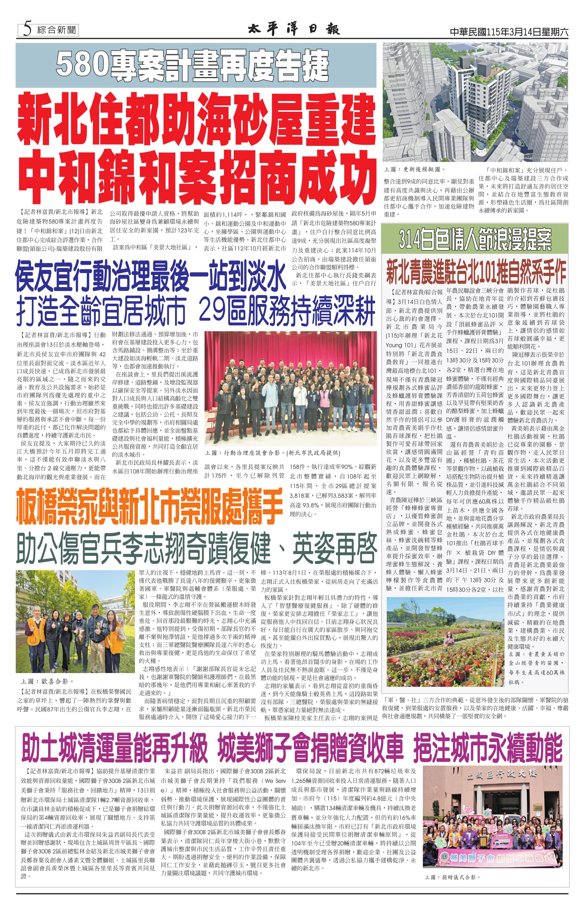115 年 3 月 14 日新聞版面