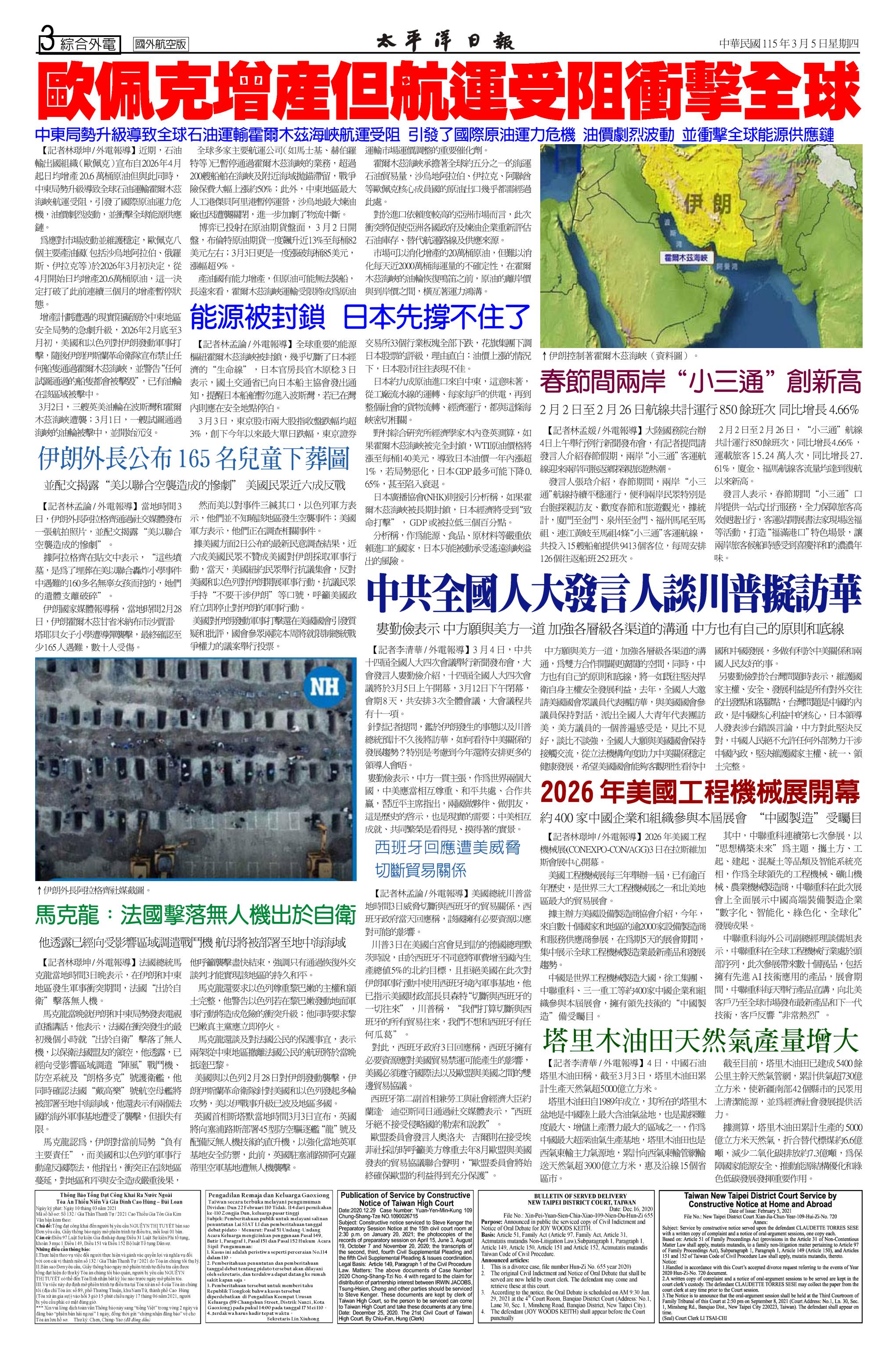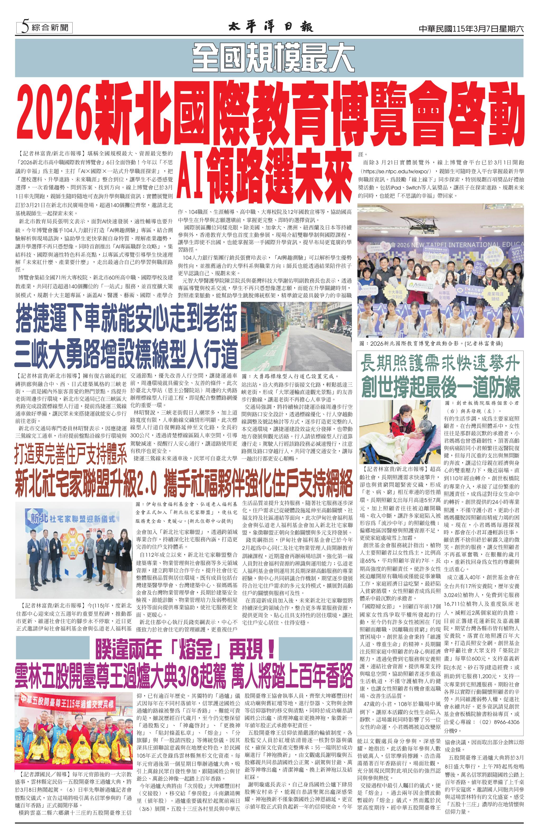 115 年 3 月 5 日新聞版面