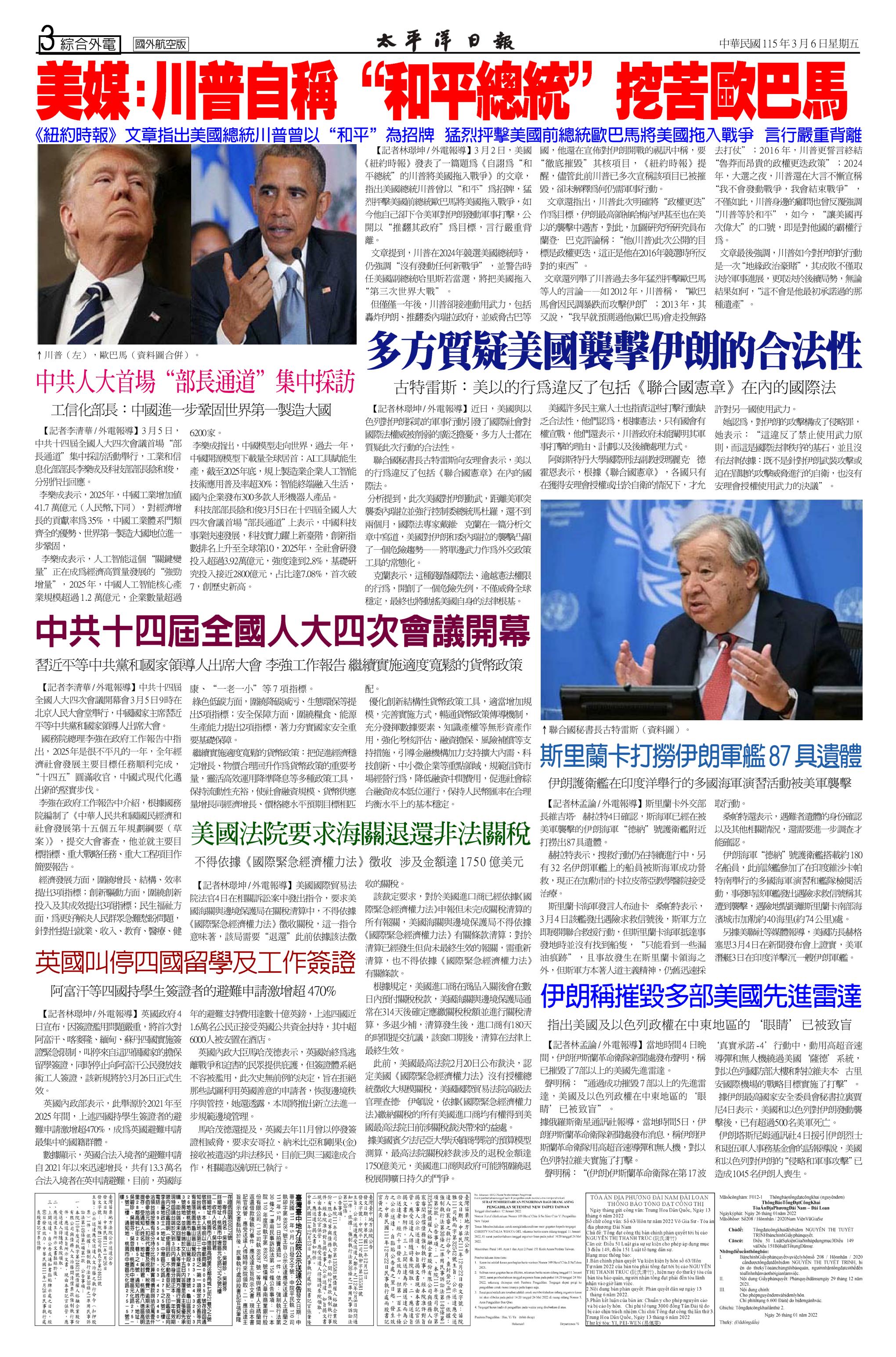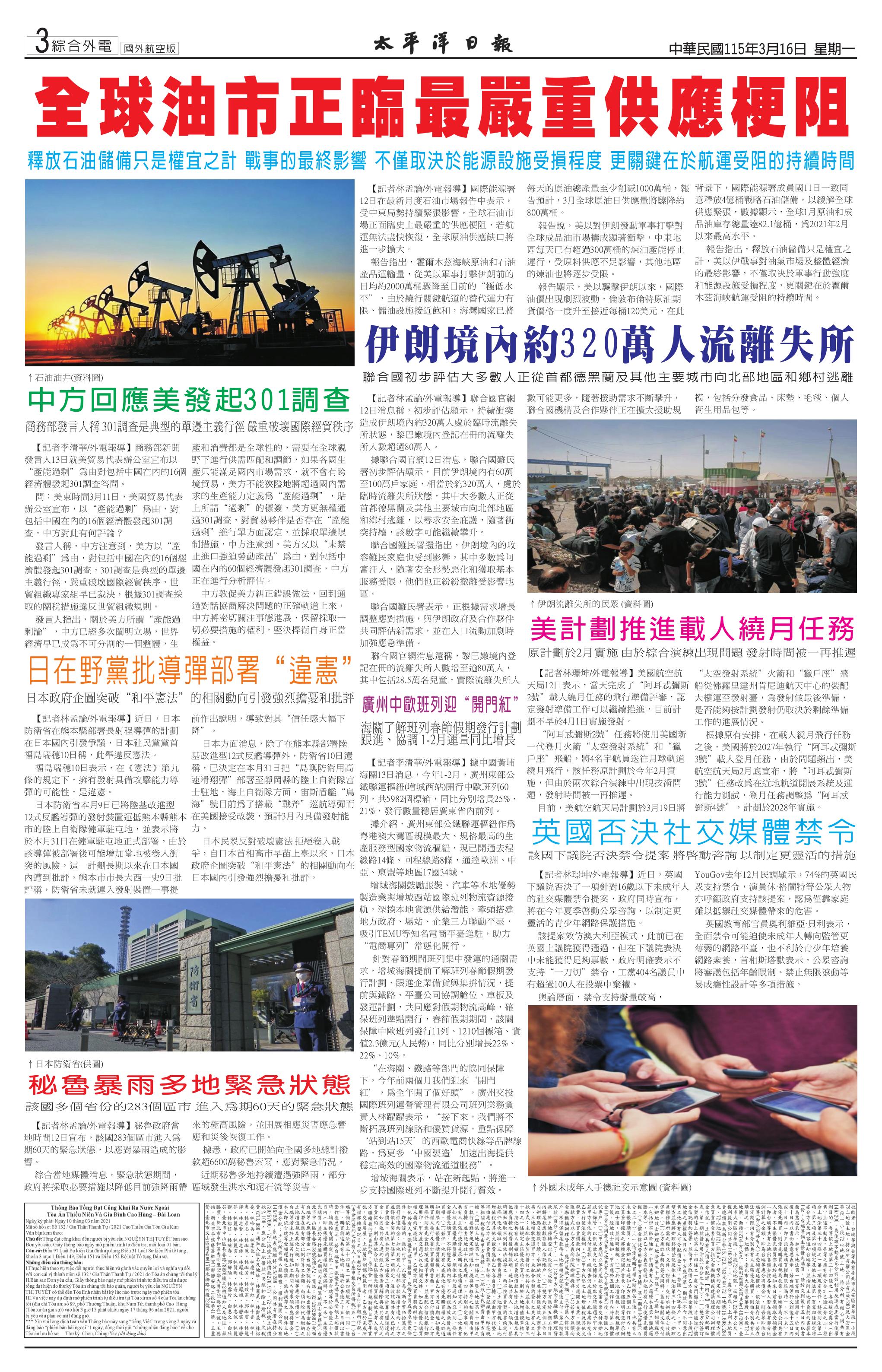 115 年 3 月 6 日新聞版面