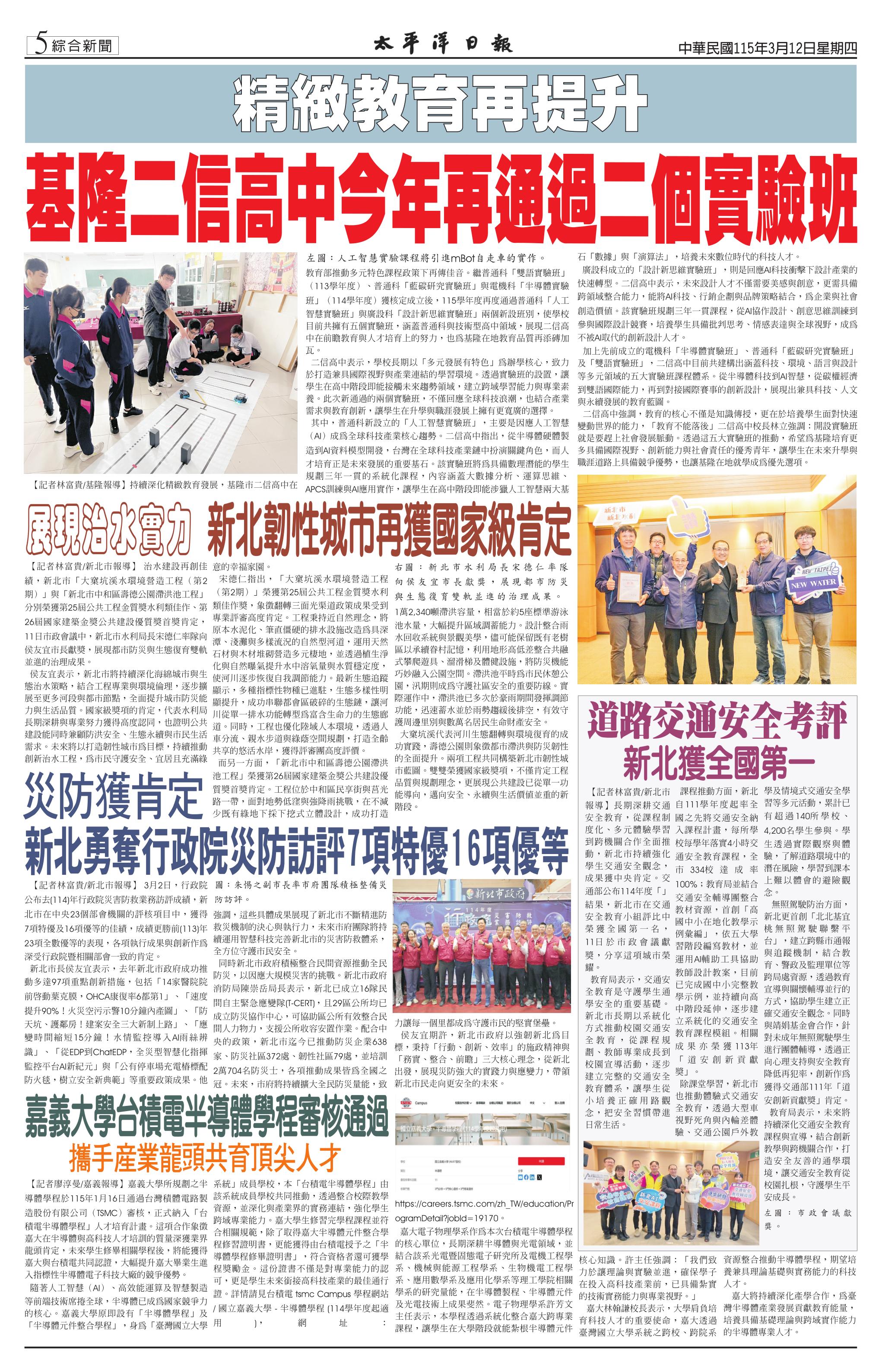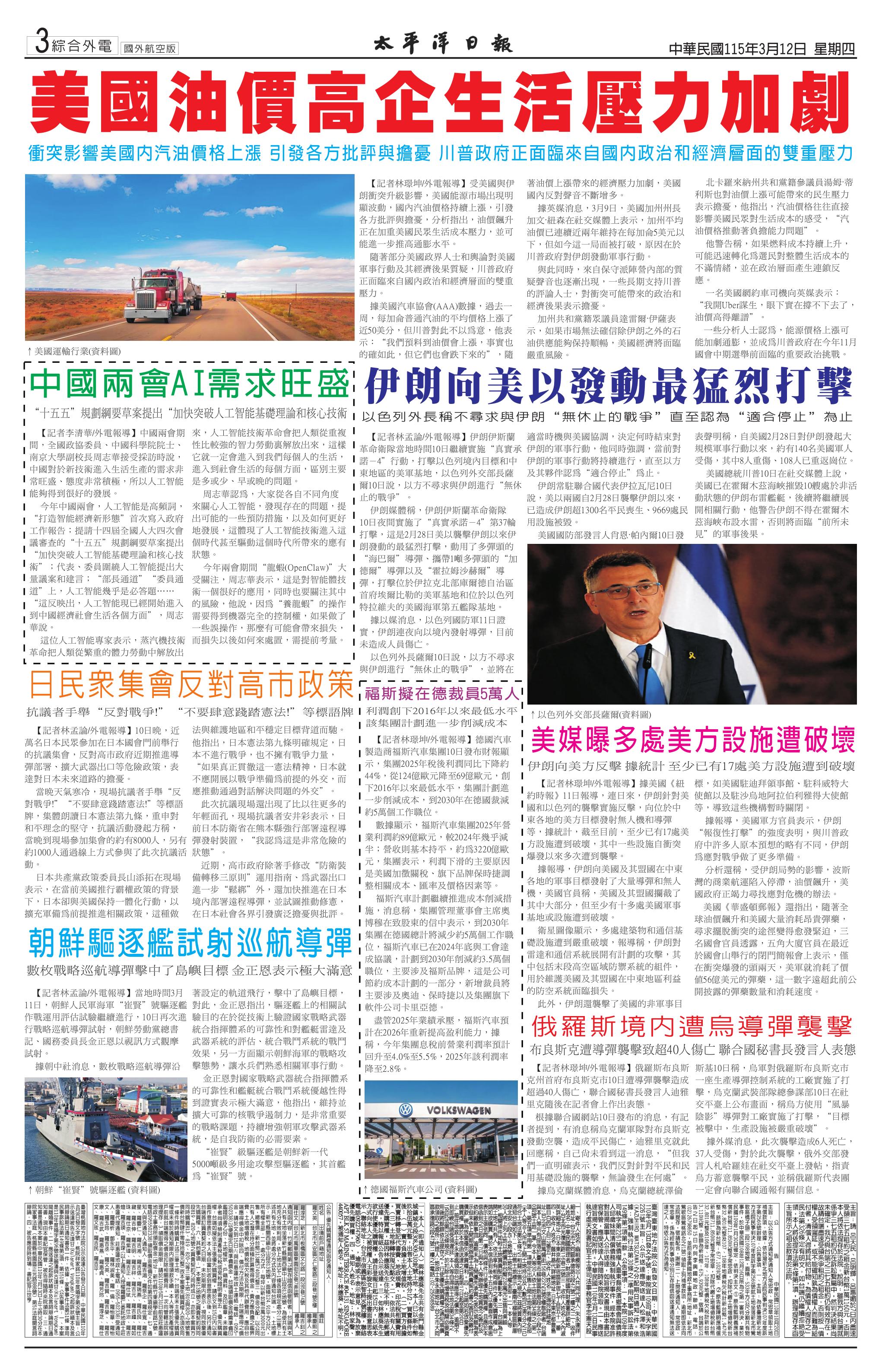 115 年 3 月 12 日新聞版面