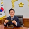 “這或許就是通往白宮的鑰匙?”韓國總統李在明在社交平臺發帖,並曬出川普送的“白宮金鑰匙”。