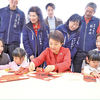 台中第二市場停車場親子館9日開幕,市長盧秀燕與親子們共同繪製春聯,慶祝「區區親子館」政策再達新里程碑。