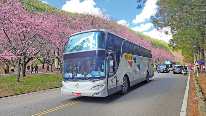 葉昭甫指出,台中市近年配合武陵櫻花季積極推動「大眾運輸賞櫻」模式,整合市區公車、山區公車及接駁服務,往年交通聯票預購反應熱烈,顯示「搭公車、賞櫻花」已逐漸成為深受旅人喜愛的春季旅遊新選擇。 建議民眾可於前一日晚間入住谷關溫泉區,隔日清晨搭乘已預約保留席次的865區公車前往梨山,再轉乘接駁專車直達武陵農場,在粉色櫻花隧道中自在漫遊,為旅程留下最美好的春日回憶。