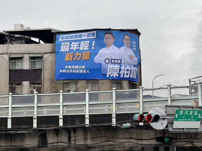 【記者林富貴/新北市報導】新北市議員參選人陳柏翰昨(4)日掛出與新北市長侯友宜合體看板,陳柏翰指出,將接棒侯市長「做代誌」的實是精神,為永和區民生活打拚!
