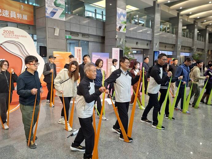 體育局說,活動現場也由曙光跑班光頭教練李翰暄帶領彈力帶互動體驗,透過「穩定配速、擺臂推進、回彈節奏」三段式動作示範,引導大家從核心穩定、上肢協調到全身節奏控制,逐步體驗跑步動力鏈概念。 透過彈力帶的回彈特性,參與者能即時感受出力與收力節奏的變化,如同跑步時的配速提醒,也讓運動科學透過簡單器材轉化為日常可運用的訓練方法。