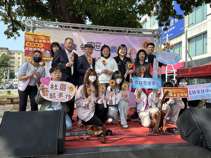 【記者林富貴/雲林報導】3月8日婦女節,雲林家扶無窮世代義賣會在布袋戲館前廣場,由家扶才藝隊精彩樂聲,陪伴愛心民眾尋寶做公益熱鬧登場。 雲林縣副縣長謝淑亞、陳燦勲主委、吳裕田副主委、立委張嘉郡、丁學忠;黃美瑤議員、虎尾鎮長林嘉弘及虎尾鎮鎮代會陳明聖主席等,抵會場率先祝福所有女士們婦女節健康快樂,尤其是雲林家扶莪馨會媽媽志工伙伴承辦這次無窮世代義賣,將象徵溫暖、希望與活力帶代給家扶的兒童們,還有馬躍新春「藝」起體驗「毛根花」~日頭花DIY手作~「毛」起來籌措助學金「藝」起挖寶做公益。