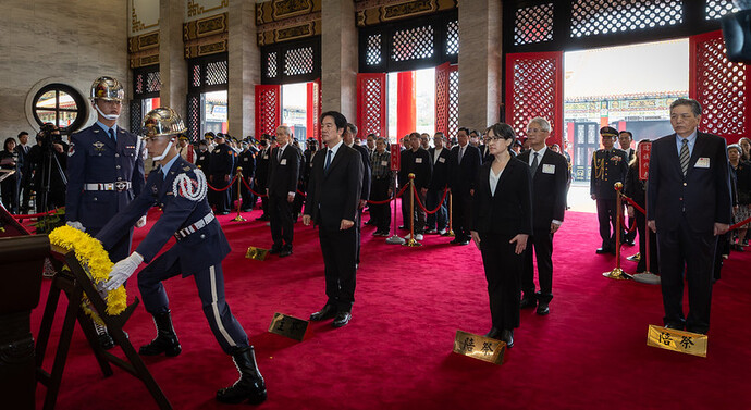 賴總統在國安會秘書長吳釗燮陪同下,於崇戎樂聲中抵達忠烈祠。