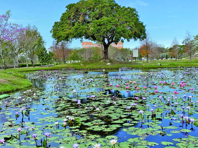 建設局長陳大田表示,后里環保公園結合生態景觀與多元休憩機能,提供市民散步、野餐、遛狗及親子活動的友善環境。 園內蓮花池每年2月下旬陸續綻放,花期長達半年以上,民眾可從春天一路欣賞至盛夏,感受自然節奏與四季更迭。
