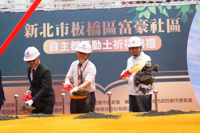 【記者林富貴/新北市報導】在歷經多年整合與努力,新北市政府專案輔導的板橋「富豪社區」海砂屋自主都更案,今(23)日舉行開工動土典禮,在新北市長侯友宜及多位民意代表與更新會住戶共同見證下,社區邁入嶄新階段。