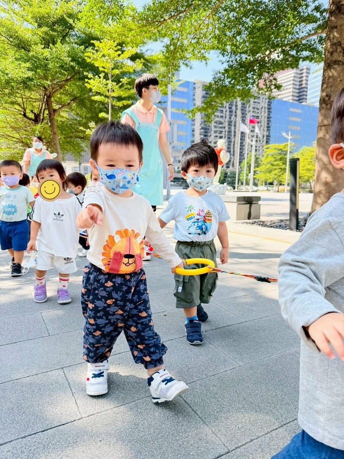 圖說:實質翻轉公務職場育兒想像,圖為中市府員工托嬰中心幼兒散步場景。 (中市人事處提供)