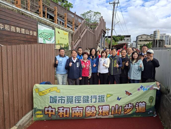 為讓市有土地活化再利用,中和區公所秉持為里民服務宗旨,並秉持以為里民服務宗旨,乃著手辦理步道工程之規劃設計與開發興闢。 完工後民眾除可以遠眺烘爐地土地公、亦可觀看本區南勢依山傍水的地勢,為中和區域增加一處健行休憩場所。 該步道進一步串連南勢地區周遭景點,除能改善既有坡地之環境,以增進市民接觸大自然的意願及遊憩休閒的興趣,故將於興闢步道擋牆入口處,採用木作材質設置意象銘牌,並以「中和南勢環山步道」為命名,目前步道工程第一期及第二期業已全數完工,中和區公所29日上午舉行完工說明會,新北市議員陳錦錠、新北市議員邱烽堯、新北市議員張嘉玲、新北市議員張維倩、中和區里長聯誼會會長謝森儒,以及各里里長、民意代表助理,都特地到場。