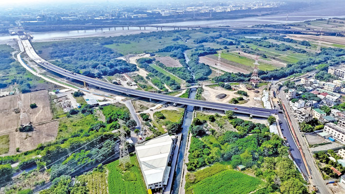 建設局表示,工程自112年1月開工以來,接連遭遇多項管線遷移問題,並需在穿越國道三號的有限空間中施工,加上颱風與豪雨多次來襲,施工環境相當嚴峻。 經工程團隊持續調整工法、全力推進,目前已完成30座橋墩中的27座,橋面推進長度達1,122公尺,大肚與和美兩端引道工程也逐步成形,整體進度持續向前。