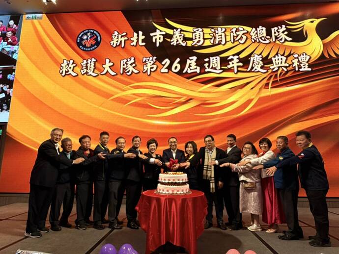 【記者林富貴/新北市報導】為慶祝成立26週年,新北市義勇消防總隊救護大隊今(30)日18時30分於頤品大飯店-新莊晶冠館盛大舉辦「新北市義勇消防總隊救護大隊第26屆週年慶」,新北市長侯友宜親臨主持,現場超過400名貴賓共同見證盛會,氣氛熱鬧、場面盛大。