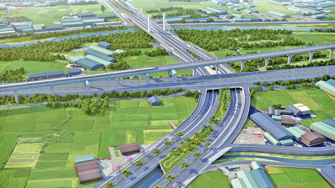 建設局指出,市政路延伸工程第一標已於5月通車,分流台灣大道車潮並展現路網效益;安和路至環中路段第二標,需跨越國道、高鐵及筏子溪,施工難度極高,由春原營造及萬德營造共同承攬。