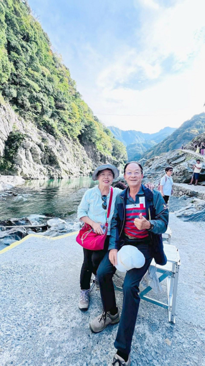 圖:張山明董事長與鄭彩仁老師伉儷情深,他們熱愛戶外活動,把健康法則傳遞出去。 (張山明提供)