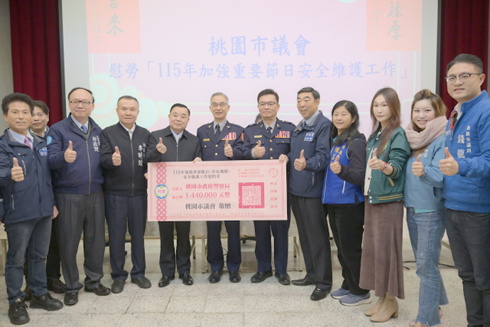 【記者廖淳曼/桃園報導】115年春節將至,桃園市議會為感謝警察、消防同仁於「加強重要節日安全維護工作」(春安期間:2/9—2/23)期間投入辛勞,議長邱奕勝暨議員同仁,於22日上午前往桃園市政府警察局及消防局,慰勞警、消人員,並致贈慰勞金總計254萬元。
