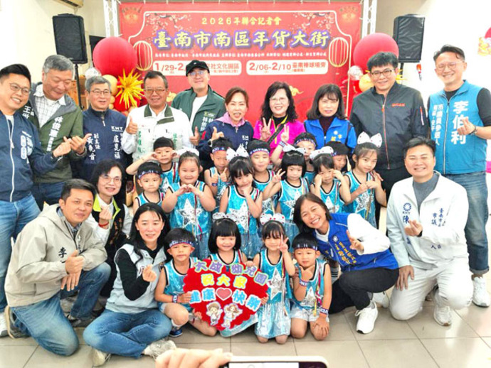 【記者吳淑華/台南報導】臺南市南區眷村年貨大街活動由市長黃偉哲偕同南區區長蕭琇華、新生里里長王安國、明德里里長陳瑞華共同啟動,正式揭開南區年度重要年節活動序幕。 今年由明德里辦公處辦理的「水交社文化季暨眷村年貨大街」,以及新生里辦公處接力舉辦的「臺南眷村年貨大街」將串聯成雙場域、跨時段的年貨盛會,邀請市民一同走進眷村時光,感受過年最真摯的溫暖情懷。
