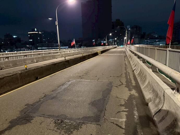 圖說:為提升道路品質與行車安全,大漢橋、新海橋將於1月30日至2月1日夜間進行路面銑鋪。 圖為新海橋。