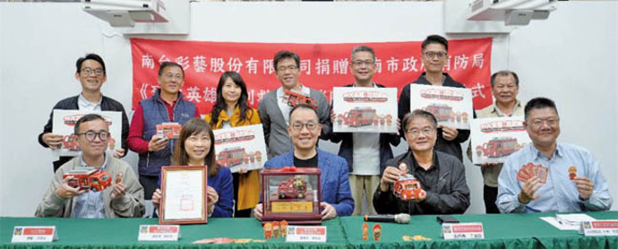 【記者黃燕/台南報導】為強化消防安全教育、提升孩童與家庭防災意識,南台彩藝股份有限公司捐贈3000份《烈火英雄即刻救援》消防車紙模型桌遊予臺南市政府消防局,提供作為防災宣導與教育推廣使用。 捐贈儀式於消防局防災教育館舉行,由消防局副局長丁春能代表受贈,並致贈感謝狀,感謝企業善盡社會責任。