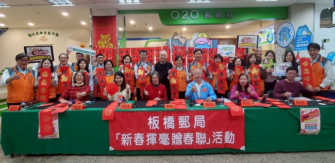 板橋郵局表示,新春揮毫是一個年節應景的喜慶活動,傳達農曆春節即將到來的喜訊,透過春聯來表達美好的願景,歡迎大家踴躍前來參與歡慶春節活動,也感謝民眾長期對郵局的支持與愛護,並祝福大家在新的一年馬年發大財。