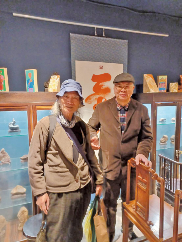 圖:藝術家楊樹森與大詩人林煥彰老師在展場合影。 (記者廖武龍攝)