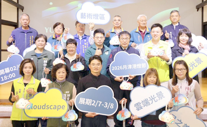 【記者袁登●/台南報導】台南市府於鹽水區永成戲院舉辦「「2026台南月津港燈節」宣傳記者會,宣布將於2月7日起至3月8日止,在鹽水月津港親水公園盛大展出。 邁入第16週年的月津港燈節,今年以「儲存未來鹽水的想像-雲端光景Cloudscape」為主題,結合光藝術、科技媒材與地方文化記憶,邀請民眾走入夜間河港,在光影交織中感受橫跨歷史與未來的沉浸式藝術體驗。