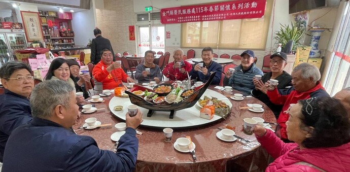 【記者林富貴/金門報導】因農曆春節將近,對許多年長、獨居的榮民長輩而言,過年往往少了團圓的熱鬧,多了一份靜默的等待。 為了讓這些勞苦功高的長輩在歲末寒冬中感受到家的溫暖,金門縣榮民服務處特別結合榮民榮眷基金會及會屬事業機構,於春節前夕辦理感恩圍爐餐會,邀請轄區年長及獨居榮民、遺眷與鄰托人提前圍爐團聚,共度溫馨時光。
