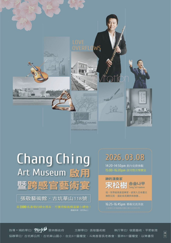【記者譚國民/報導】雲林縣首座私人專業美術館—「張敬藝術館」,在歷經環境整飭與內部調整後,於3月8日(週日)下午三時舉行「興起發光、讓愛走動」活動,宣示正式啟用暨「跨感官藝術宴」。 活動邀來韓裔美籍國際長笛家宋松樹老師與在地華山國小弦樂團現場演奏,交織愛的詩歌分享。 這不僅是為了完成創始人張敬大師的遺願,更象徵著藝術館在經歷丹娜絲風災重建後的嶄新重生。