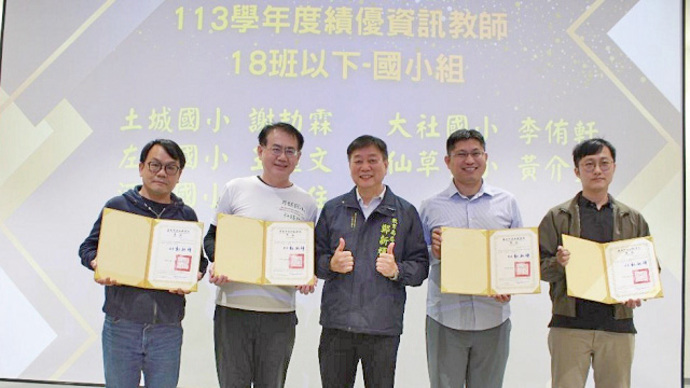 (圖說):南市教育局表揚校園資訊基礎環境暨數位學習績優學校與教師。 (記者張志暐/翻攝)
