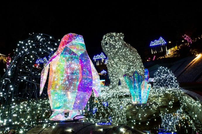 圖說:中港光雕展展區有可愛的動物北極熊及企鵝。