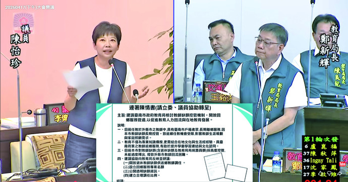 【記者吳淑華/台南報導】市議員陳怡珍在議會質詢時,為第一線的基層老師發聲。 近期接獲多位教師連署陳情,不論是幼教、特教、國中階段,反映臺南市教師員額長期採取高度控管機制,導致即使本市具有臺南戶籍、願意返鄉服務的教師,也難以回流任教,這不僅影響教師個人生涯規劃與家庭照顧,更直接衝擊學校端的教學穩定。 陳怡珍指出,以國中階段為例,目前臺南市一般正式教師缺額仍有238位,但教育局卻未開放教師甄試,等於把外縣市優秀師資擋在門外。 學校現場面臨人力不足,只能以代理、代課方式勉強支撐,長期下來,對教學品質與學生受教權都是傷害。