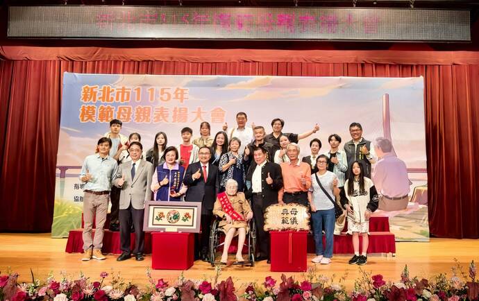 【記者廖武龍/台北報導】新北市今年表揚模範母親,其中蔡素雲女士百歲高齡榮膺三料模範母親,更是引為傳奇,是模範中的模範,值得敬佩與學習。