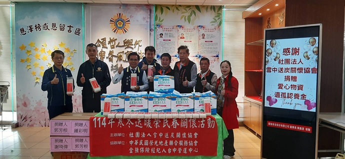 【記者林富貴/桃園報導】24日,社團法人雪中送炭關懷協會周三貴理事長蒞臨桃園市榮民服務處,辦理「寒冬送暖」關懷活動,捐贈多項生活物資及榮民遺孤認養金,以實際行動關懷榮民及其遺孤家庭,在寒冬中送上溫暖與希望。