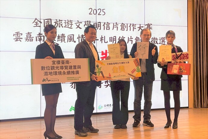 【記者林富貴/綜合報導】私立東南科技大學休閒事業管理系在「2025全國旅遊文學明信片創作大賽-雲嘉南永續風情」中大放異彩,勇奪全國總決賽大專組1金獎、2銀獎及4佳作,共七組優異成績,展現學子結合藝術創作與永續觀念的深厚實力,為校爭光。