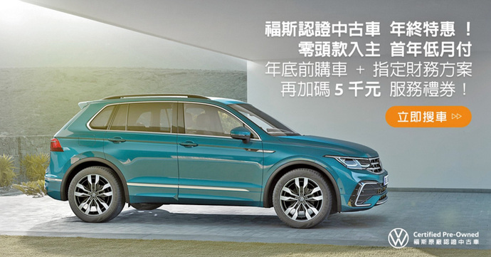 【記者/吳秀瑋圖/台灣福斯汽車提供】CertifiedPre-Owned福斯原廠認證中古車秉持德國原廠標準,致力於帶給台灣消費者嚴謹專業的優質服務,所有車款皆經133項全面車況認證仔細篩選審核,公開透明刊載於官方網站,選購可靠又便利。 此外,8大保證讓消費者從購車至售後皆能享有完善保障,建立值得信賴的中古車品牌首選。 即日起年終特惠熱烈開跑,入主即享零頭款首年低月付優惠,年底前指定財務方案再獲5,000元服務禮券,歡迎前往授權展示中心鑑賞試乘。