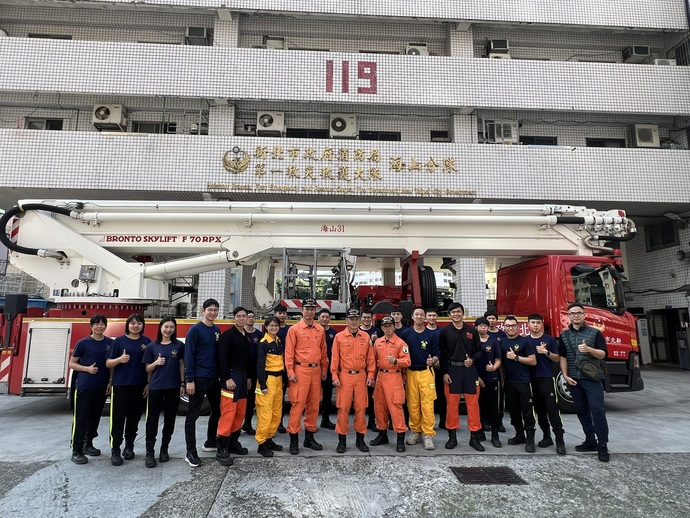 參訪行程首先安排參觀海山分隊的56化災器材車。 由於日本教官隸屬的第八方面本部具備豐富的化災處置實戰經驗,雙方針對車輛器材配置及化災防範實務進行深度交流。 隨後,日本教官更親自體驗搭乘台灣消防隊目前最高的70公尺雲梯車,從高空視角觀察新北市的都市救災環境。 日方教官亦參與了第一大隊的新生訓練,由台方實行雙節梯高低所救出訓練項目。 日本教官全程專注觀摩,並於課後針對救援細節提供專業回饋與觀察建議。