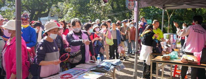 提升活動趣味性與宣導效果,今年特別結合各單位設置宣導攤位,透過趣味闖關小遊戲,讓民眾在輕鬆互動中認識衛生保健、廉政宣導等與生活息息相關的政策資訊。 健行終點處並規劃農民市集,完成闖關並集滿印章者,可兌換限量實用宣導品1份,數量共2,000份,送完為止。