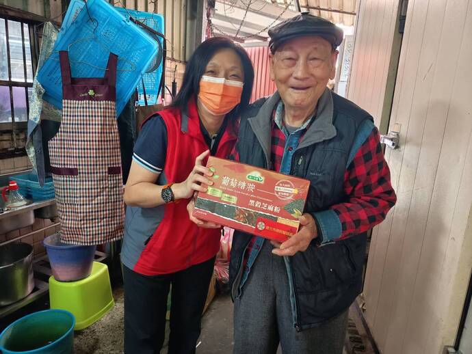 首先探視經營自助餐的楊阿姨,其協助照顧高齡95歲的曹伯伯,曹伯伯每日協助準備自助餐菜餚,因為勤於活動,身體仍非常健康,他也感謝楊阿姨一家人的照顧。 服務團隊除致贈營養品表達敬意外,建議入住榮家以獲得更完善的照護,惟曹伯伯習慣現在生活不想變動。 另訪視謝伯伯,榮服處積極協助其申請長照服務外,訪視時王組長特別叮嚀防詐騙觀念,如接獲可疑電話,務必落實「一聽、二掛、三查證」,並撥打165防詐騙專線查證。