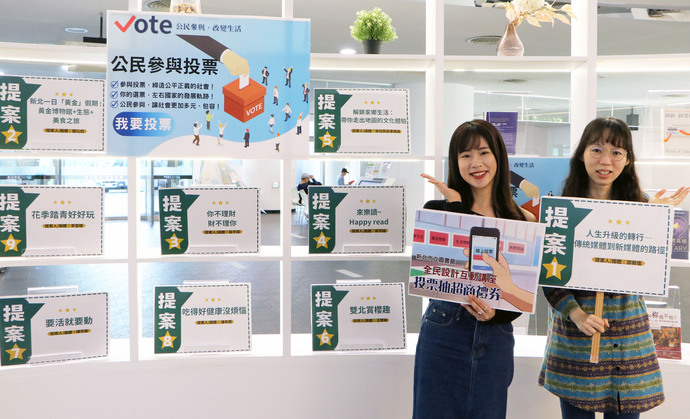 「全民設計互動系列講座」共有9項提案進入票選,包括職涯轉型與自我成長的「人生升級的轉行(傳統媒體到新媒體的路徑)」、「跑出舒適圈,發現更好的自己」;投資理財的「你不理財,財不理你」;健康生活的「要活就要動」、「吃得好健康沒煩惱」;多元文化的「解鎖家鄉生活—帶你走出地圖的文化體驗」;以及休閒旅遊的「花季好好玩」、「新北一日『黃金』假期」、「雙北賞櫻趣」等,3月27日至4月15日止開放全民票選,歡迎大家到「新北市政府公民參與網路投票系統」進行線上投票,參加投票還可以抽100元超商禮券。 詳細資訊請至新北市立圖書館網站查詢(http://www.library.ntpc.gov.tw)。