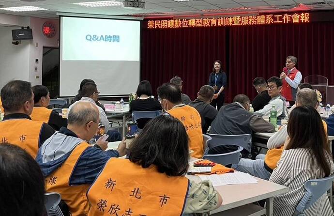 這次訓練由臺北榮總高齡醫學中心主任林明憲率醫師黃安君團隊授課,說明數位照護推動方向與平台應用機制,並指出「安心御老」平台結合醫療與社政資源,透過科技串聯服務網絡,使長者在熟悉的生活環境中仍能獲得即時照護支持;另透過案例分享與實務操作,協助服務人員熟悉訪視紀錄登錄、健康狀況回報及跨單位通報流程。 現場互動熱絡,與會人員踴躍提問,進一步強化第一線照護應變能力與實務運用經驗。