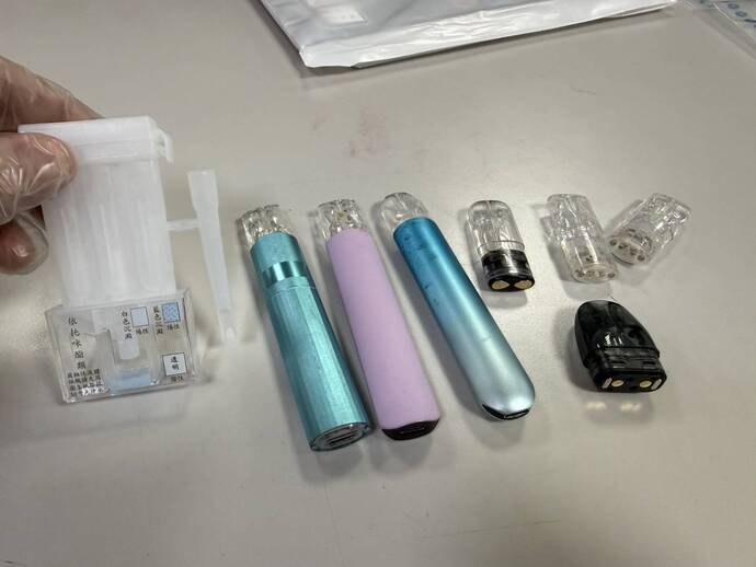現場執行搜索時另查獲在場人劉男(37歲)持有二級毒品依托咪酯菸彈、許女(25歲)為新北地檢發布之詐欺通緝犯,警詢後另移請臺北地檢、新北地檢偵辦。