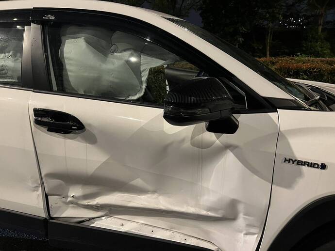 現場A車自小客駕駛黃男(28歲)自述疑因超車時車輛操控不慎打滑失控,撞擊B車駕駛吳男(59歲)營小客之右側車門。