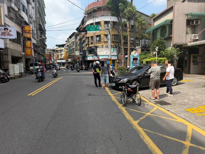 【記者林富貴/新北市報導】110通報新莊區八德街56號立體停車場前(光華所轄區)發生A2類交通事故。 62歲陳姓男子購物完返家途中駕駛自小客車,從停車場往民安路方向,駛出停車場時,稱疑似因查看對向車輛,未注意車前狀況,與當時推輪椅之羅女(30歲、購物途中)與乘坐於輪椅「行動輔助器」上之謝女(68歲、購物途中),由八德街往龍安路方向之輪椅「行動輔助器」,發生碰撞。