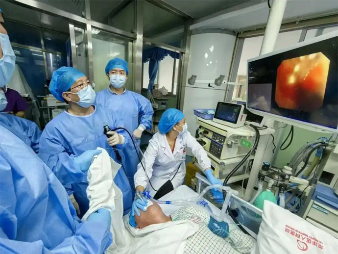 ↑圖說:圖為深圳市龍華人民醫院成功為一名肺癌患者開展廣東首例“經支氣管冷凍消融術”,突破了傳統經胸壁冷凍消融術式的局限,成為廣大肺癌患者的福音(資料圖)。