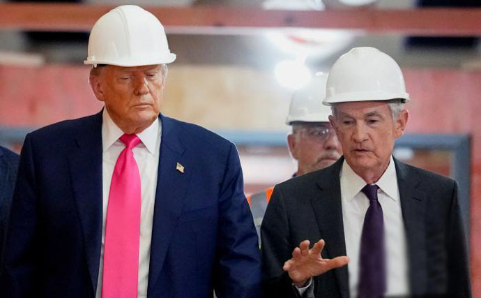 ↑圖說:當地時間2025年7月24日,美國總統川普與美聯儲主席鮑威爾在美聯儲大樓(資料圖)。