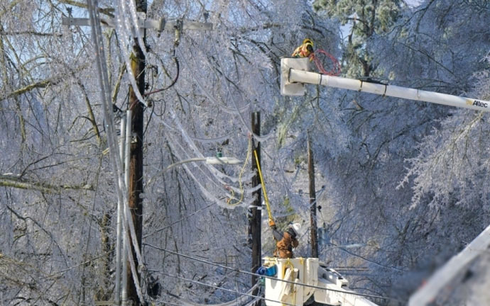 ↑圖說:當地時間1月26日,美國密西西比州牛津市,電力工人正在修復因冬季風暴而損壞的電力設施(供圖)。