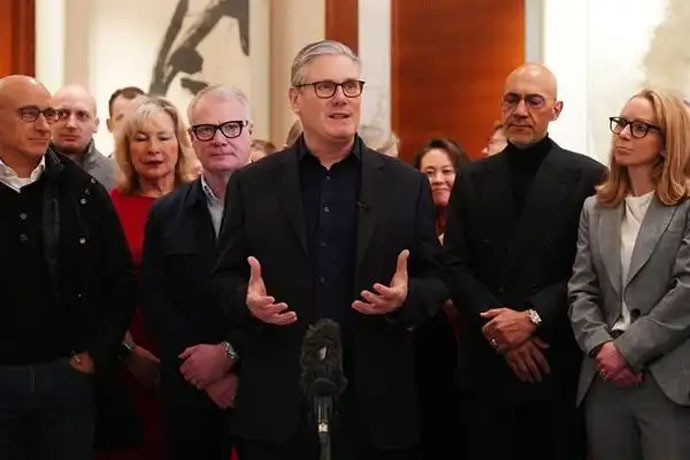 ↑圖說:1月28日,北京,英國首相斯塔默(中)在北京一家酒店向商界代表團發表講話(供圖)。